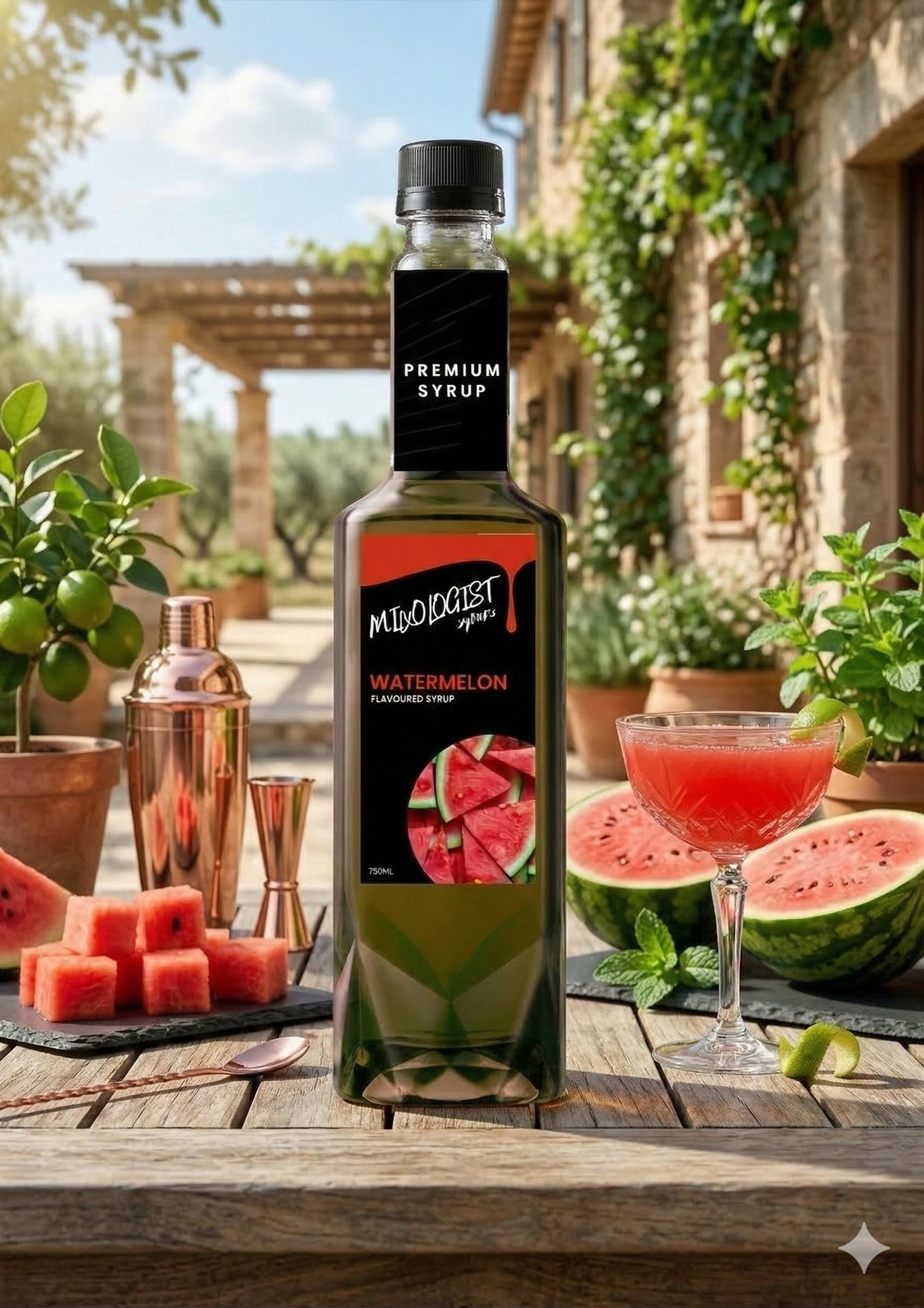 Essential syrup for drinks; adds flavor, sweetness and enhances taste. 750ML